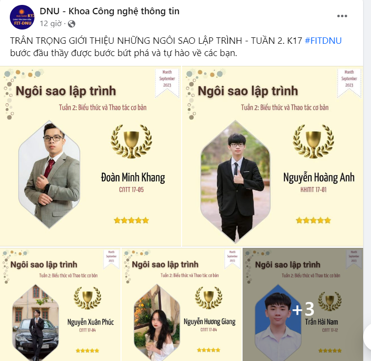 Timely honoring, encouraging and motivating students to complete their assignments well and have a passion for programming is also a measure to promptly detect factors and create better motivation for them to strive. After 3 weeks of enrollment, which are also 3 weeks of programming, many students have been honored for their programming achievements each week, the list is getting longer and the results are showing more clearly the talent, ability and passion of each student.