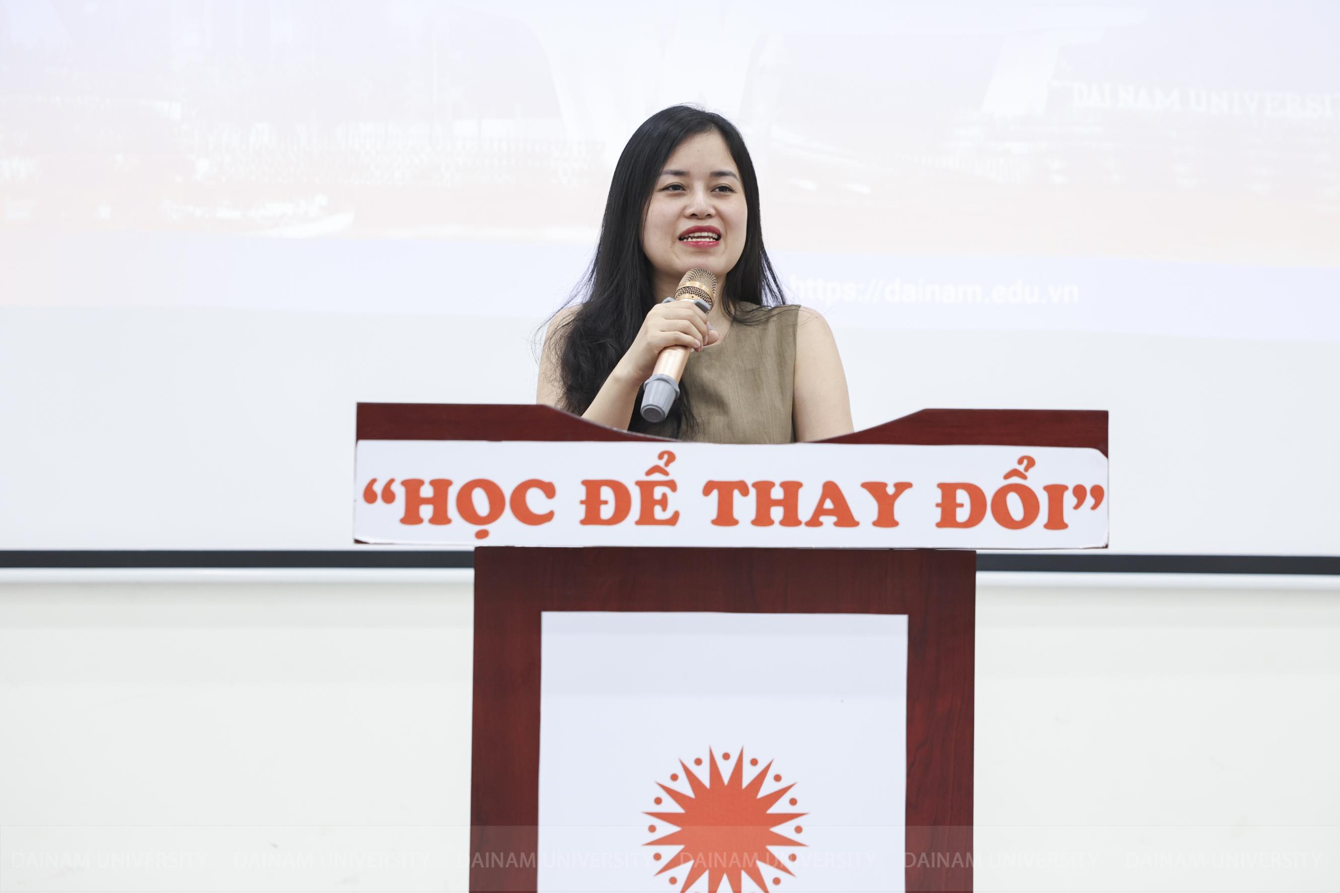 Dr. Pham Thi Hong Phuong introduces the Psychology training program at Dai Nam University.